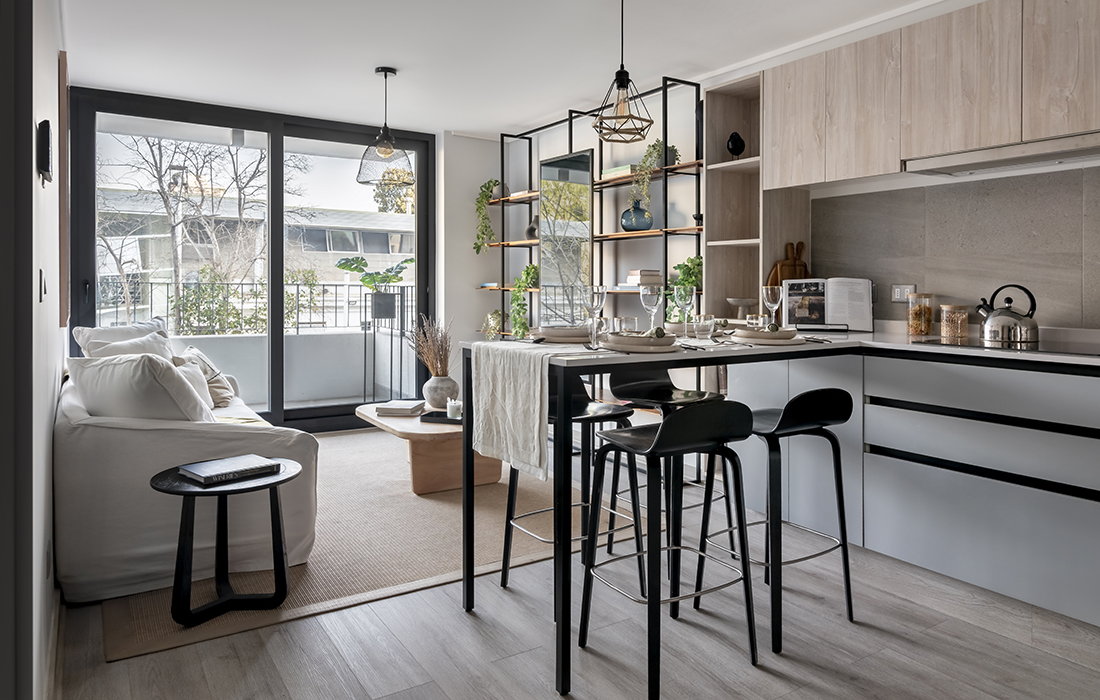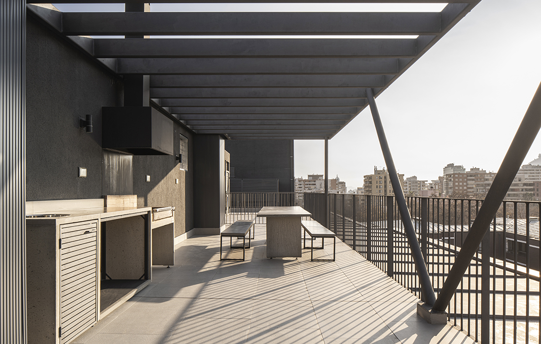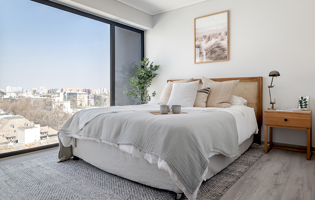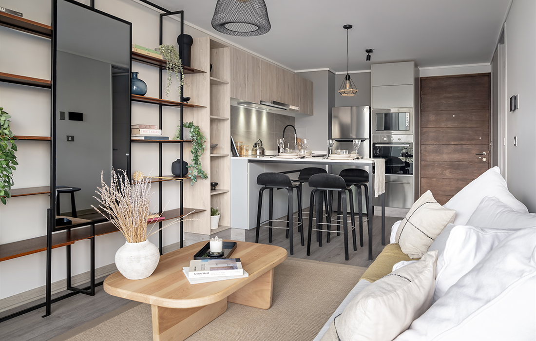 · Piso vinílico en living, dormitorios y cocinas | Porcelanato en baños y terrazas · Full Electric: cocina equipada con encimera vitrocerámica, horno eléctrico, campana, microondas, lavavajillas y termo eléctrico por departamento para ahorro en consumo · Cubierta de cuarzo en cocina para una mayor resistencia · Todos los departamentos cuentan con espacio para lavadora · Ventanas termopanel de PVC · MILLACERO es una tecnología que gestiona de manera eficiente el ahorro de gastos comunes, entregando seguridad a los residentes, con el sistema que incorpora conserje remoto junto con la gestión de encomiendas.